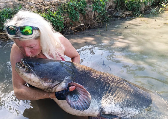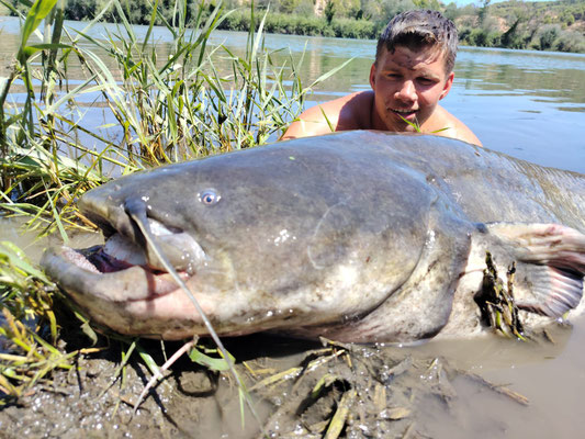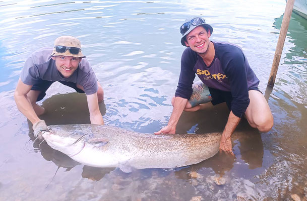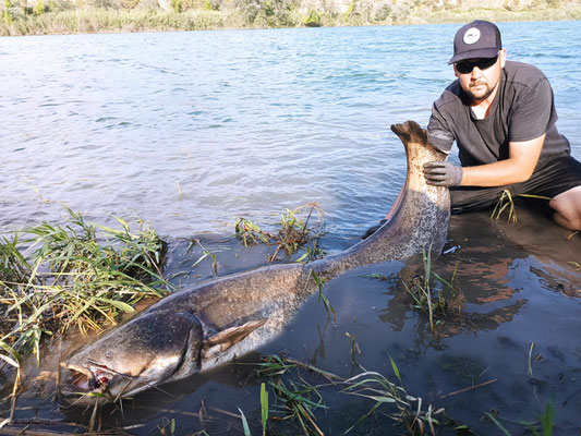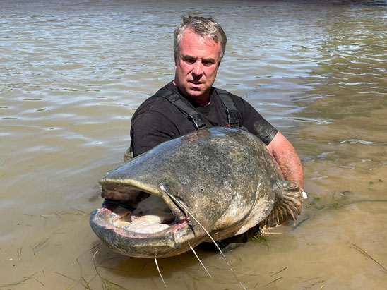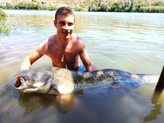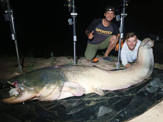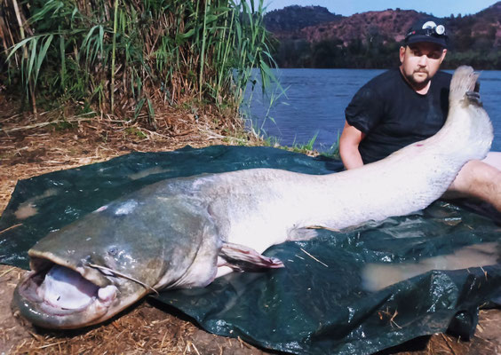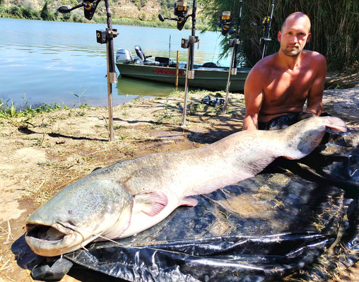 Unser Micha ("Taffi") ist seit einiger Zeit non stop im Einsatz, ist mit Guidingkunden und Gästen am Wasser. Ein paar richtig gute Fische konnten die Männers fangen! Darunter auch dieser nachfolgende Waller mit 260cm! Was für ein Brett!!!