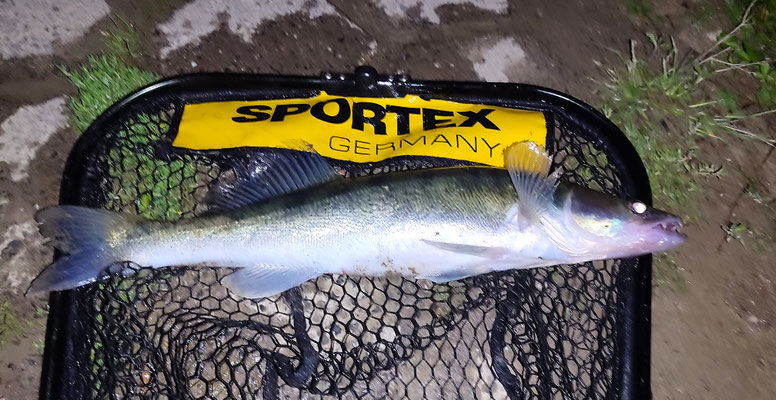 Noch kurz eine Vermutung, warum es die letzten Tage so richtig gescheppert hatte: es wurde mal wieder Wasser aus den Stauseen abgelassen. Dieses Mal entstand eine sehr spezielle Strömung, an deren Rändern standen entlang der Kanten, vor allem aber entlang der Baum-Alleen unter Wasser die Zettis. Mitunter kamen Gewichte bis über 30 Gramm in Einsatz, normal würden bis maximal 14 Gramm eigentlich reichen. Zudem könnte es auch die erste richtige Fressphase gewesen sein, auch vielleicht schon die Vorbereitung auf die Diätphase während und nach dem Laichen? Oder war doch irgendwas anderes der Grund für die sehr guten Fang-Tage? Vielleicht sind wir ja demnächst etwas schlauer… Egal wie und warum, wir freuen uns mit und für all diejenigen, die dieses miterleben konnten, ja durften! Dickes Petri!!!