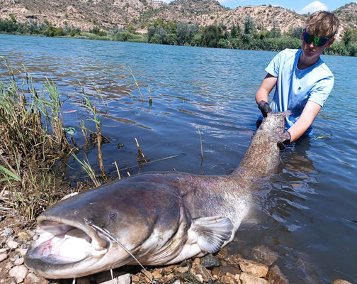Und dieser Nachschlag von Anfang Oktober ist insofern ne coole Nummer, da der glückliche Fänger sich bei noch hoch-sommerlichen Temperaturen und widrigen Umständen an die Ebro-Fische ran machte! Ok, nix Besonderes? Doch, denn der Fänger war etwas über 70 Jahre jung! Hut ab!