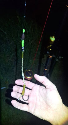 Leider sind die Phasen, in denen die Wallis launisch sind, sehr häufig, definitiv in der Mehrzahl. Gerade dafür ist dieses sehr feine Bungee gedacht! Die einzelnen Teile sehen zwar auch sehr fein aus, erfüllen aber allesamt die Mindestanforderungen was Tragkraft und Stabilität betrifft. Alles so abgestimmt, dass die rum-zickenden Waller keinen Verdacht schöpfen. Speziell für eher kleinere Köder wie paar Tauwürmer, Blutegel oder einen kleinen Köfi. Also für ein kleines Häppchen zwischendurch!